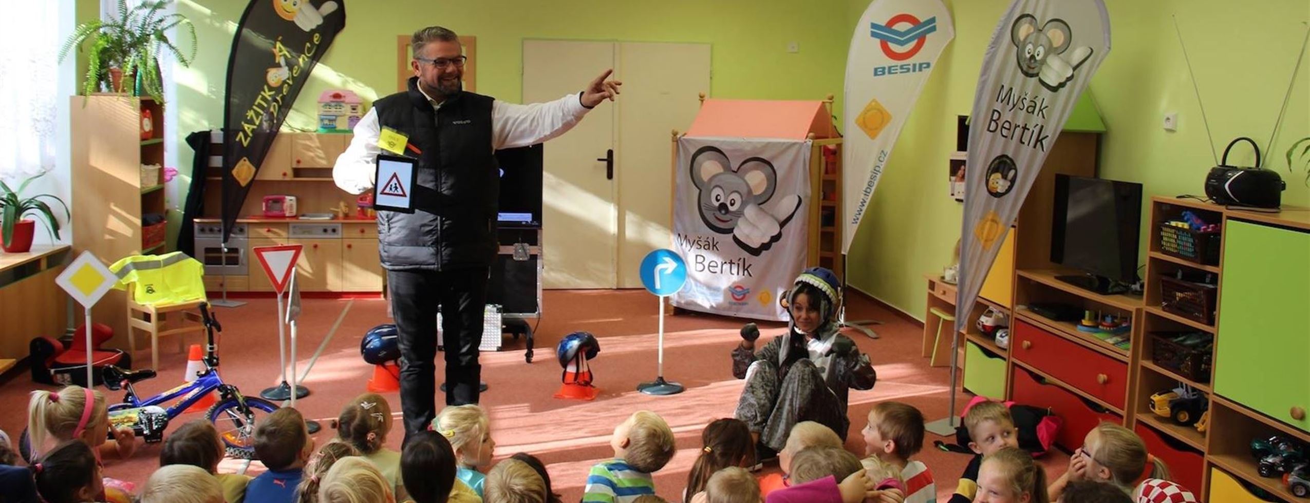 Myšák Bertík a pan Bezpečný naučí děti zodpovědnému pohybu v dopravě.